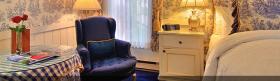 All guest rooms feature luxurious feather beds (one king or one queen - couples only inn), fireplaces and many with an in room spa tub. The rooms are beautifully decorated with an upscale country charm (no lace doilies - just a home away from home type of appeal). Niceties include bathrobes, Gilchrist & Soames bath amenities, bath salts, refrigerator (with snacks and refreshments) and complimentary wi-fi access. This place is so popular that many guests return year after year and stay in a different room each time (since they all have their own unique charms). Guest room amenities include an expanded continental breakfast (delivered to your door), daily newspaper, evening wine and hors d'oeuvres and evening turndown service.